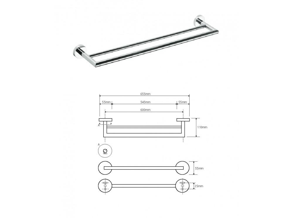 Držiak uterákov dvojitý B, 655 mm, Modern