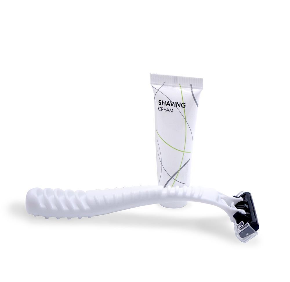 Obsah balenia: holiaci strojček s tromi čepieľkami, krém na holenie