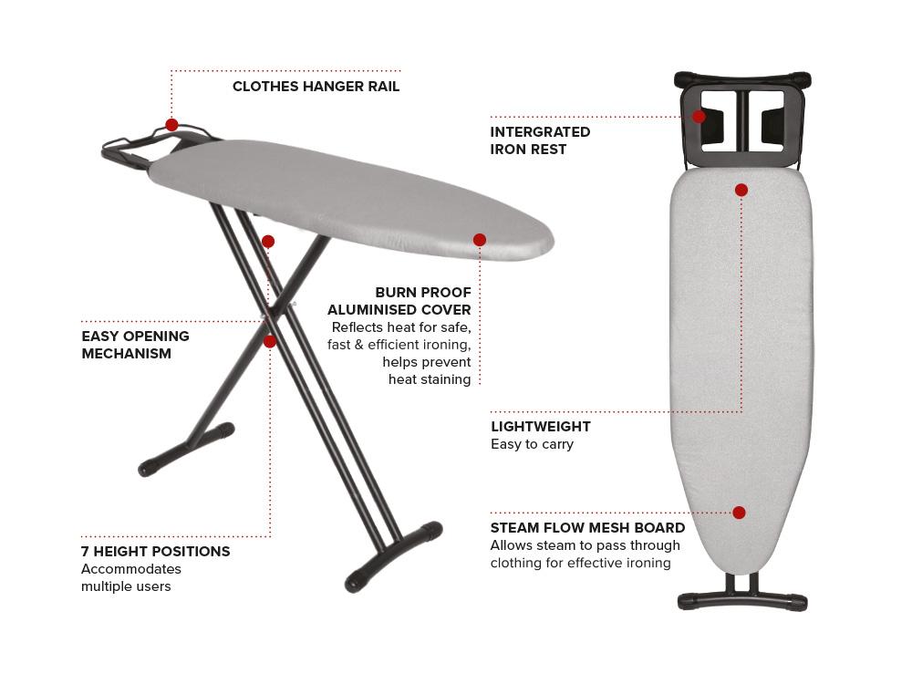 Polohy žehlenia: 7 polôh - výška 665-835 mm