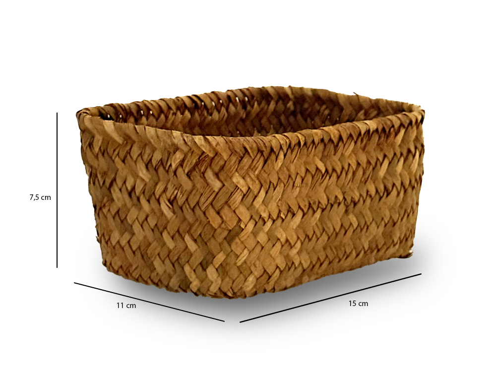 100 % Prírodný Materiál: Košíček je upletený z prírodných rastlinných vlákien morskej trávy, čo zaručuje jedinečný vzhľad a ekologický charakter.